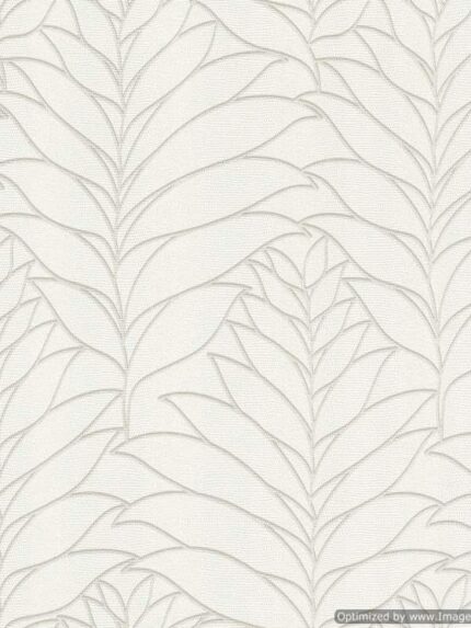 Tapeta ścienna winylowa na flizelinie – Biała z Zielonym Motywem Liści, Zmywalna, 10 m x 53 cm