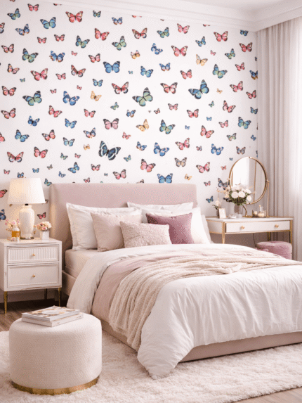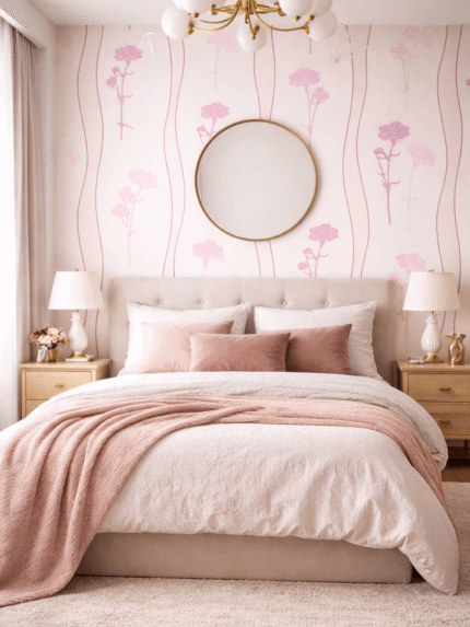 TAPETA BIAŁA ROŻOWA KOŁA 10m x 53 cm