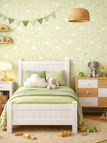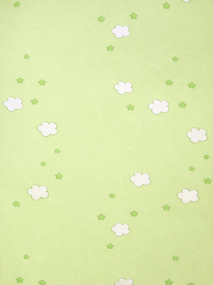 Tapeta papierowa dziecięca – Zielona z chmurkami i gwiazdkami 10m x 53 cm