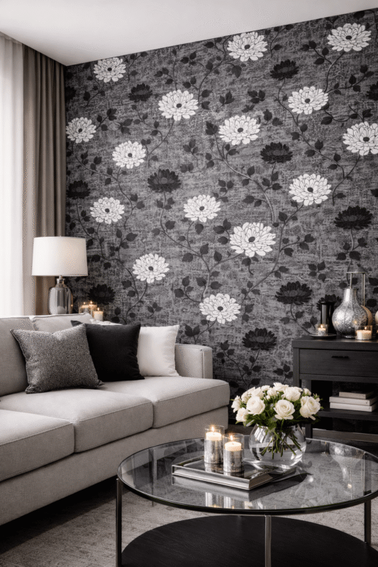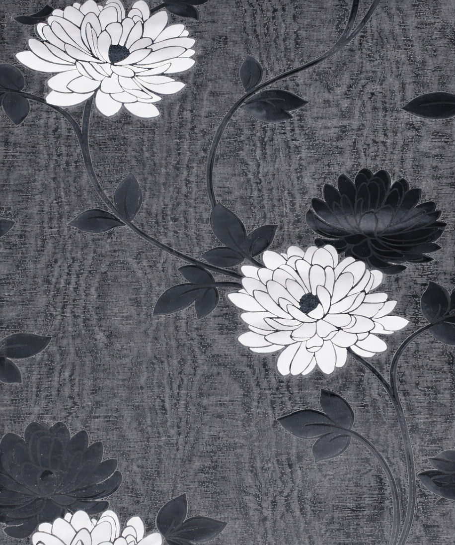 Szaro-grafitowa tapeta kwiatowa – elegancki kontrast i klasyczna dekoracyjność