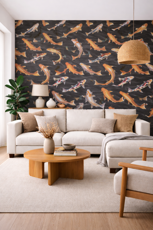 Tapeta dekoracyjna z motywem karpi koi – wyrazisty wzór inspirowany naturą i sztuką japońską