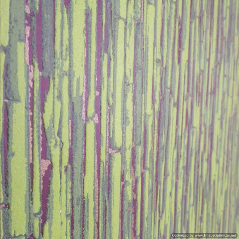 Nowoczesna tapeta dekoracyjna w intensywnym, energetycznym odcieniu zieleni przyciąga uwagę dynamicznym, pionowym wzorem inspirowanym strukturą bambusa lub naturalnych włókien. Nieregularne, wydłużone linie w różnych tonach zieleni, przełamane subtelnymi akcentami brązu i ciemnej oliwki, tworzą efekt głębi i naturalnej faktury.