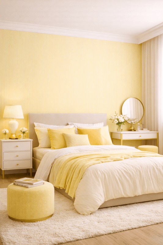 Tapeta dekoracyjna z drobnym pionowym prążkiem – świeżość i lekkość w słonecznej tonacji